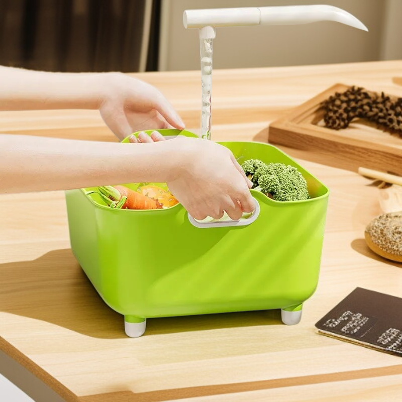 Color: Two-in-one vegetable washing basin (white), Two-in-one vegetable washing basin (green)