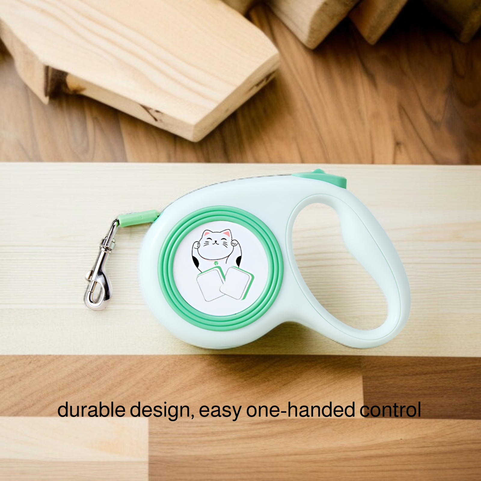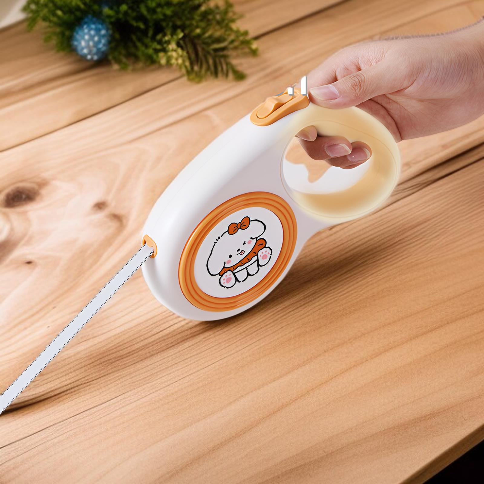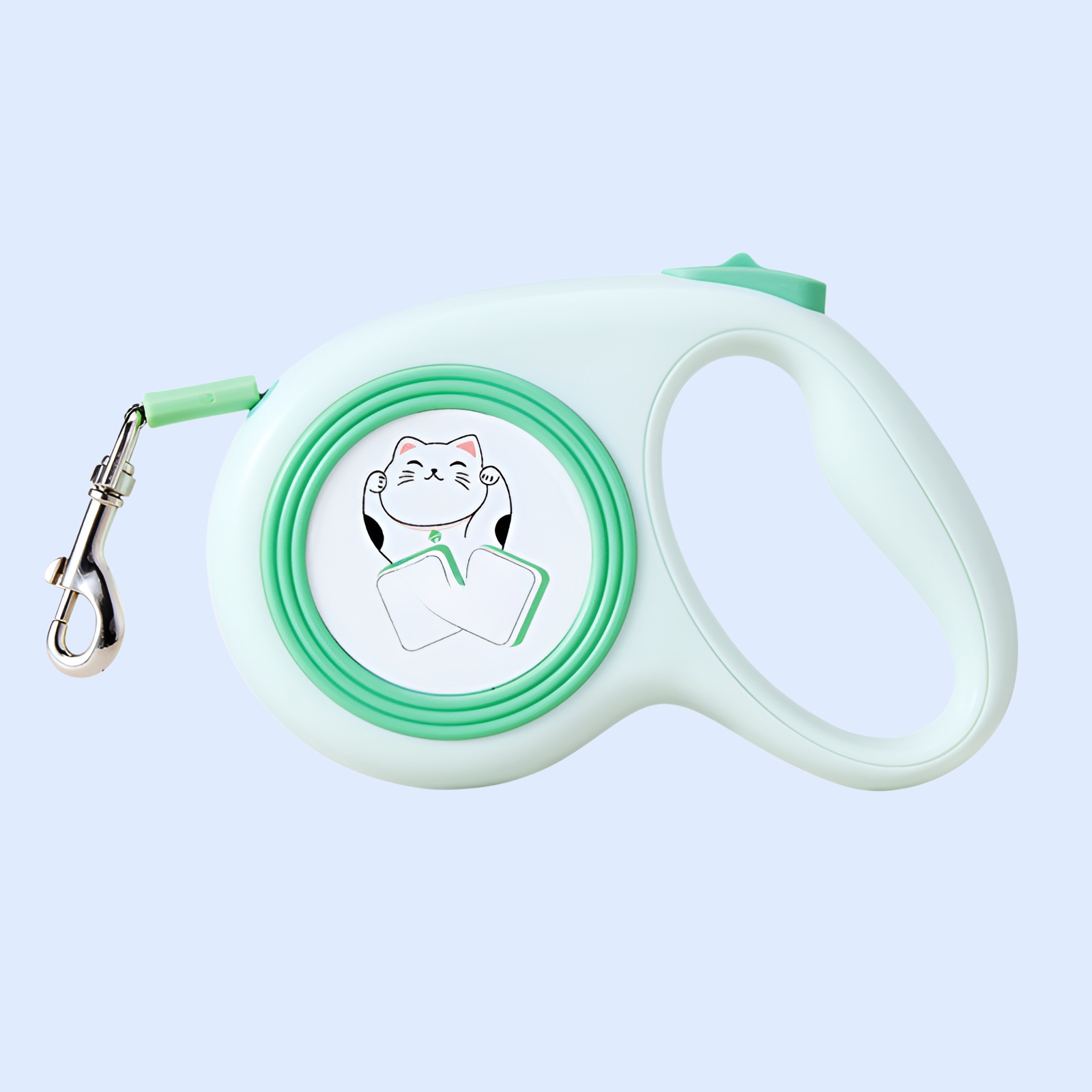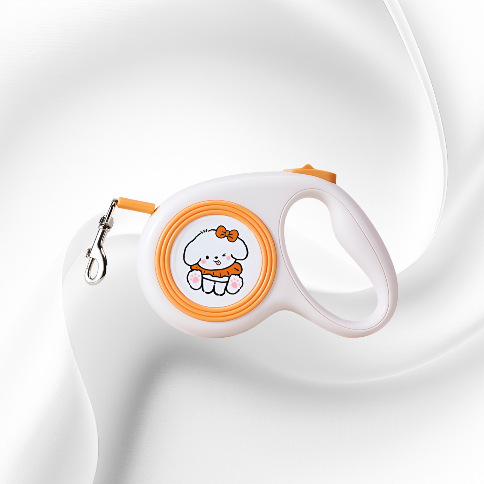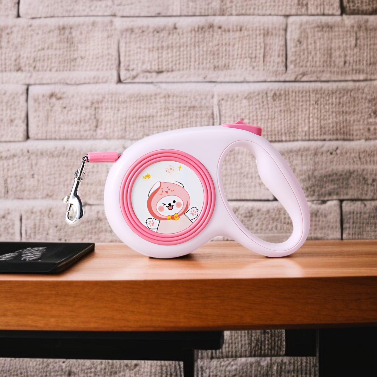 Retractable dog leash with cute illustrations, durable design, smooth retraction, comfortable grip, suitable for small and medium dogs, tangle-free, easy to use.